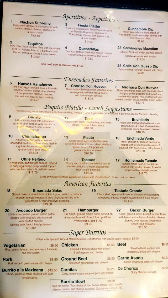 Ensenada Cuisine Restaurant offers a menu that beautifully balances classic Mexican flavors with fresh, vibrant ingredients. Among the highlights, the Special Beef and Chicken Enchilada stands out with its rich, savory filling and perfectly melted cheese, delivering a comforting yet indulgent experience. Equally impressive is the Coktel De Camaron, a refreshing shrimp cocktail that bursts with tangy citrus and subtly spiced flavors, making it a perfect starter. The menu’s variety ensures that both hearty entrees and lighter seafood options shine, reflecting careful attention to preparation and presentation. Each dish is thoughtfully crafted, maintaining authentic Mexican tastes while appealing to a broad palate. Overall, the menu at Ensenada Cuisine Restaurant demonstrates a consistent dedication to flavor, quality, and tradition, making it a must-visit for anyone seeking a satisfying and memorable dining experience.